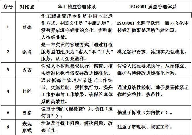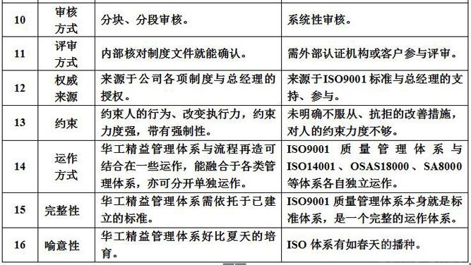 我们从执行的角度来分析对比下,华工精益与ISO的区别: