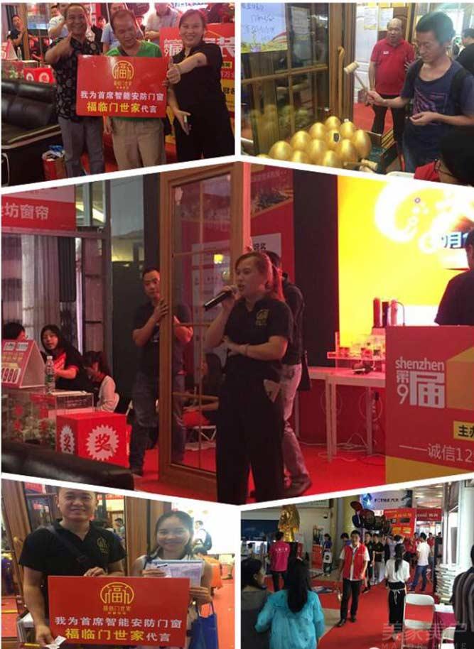 9月10—11日,福临门世家作为联合冠名商在深圳福田大中华国际交易广场参加由无忧安居网举办的第九届家装节活动。活动现场人气爆满,各个展位下定非常火爆,熙熙攘攘的人群到处走动,通道惊现人贴人现象。