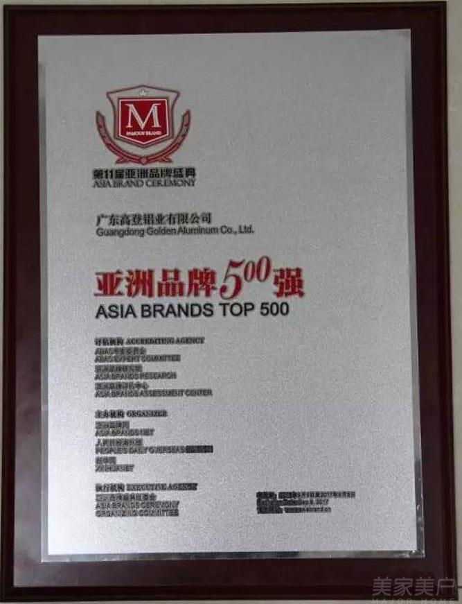实力见证,广东高登铝业集团再次荣获“亚洲品牌500强”!