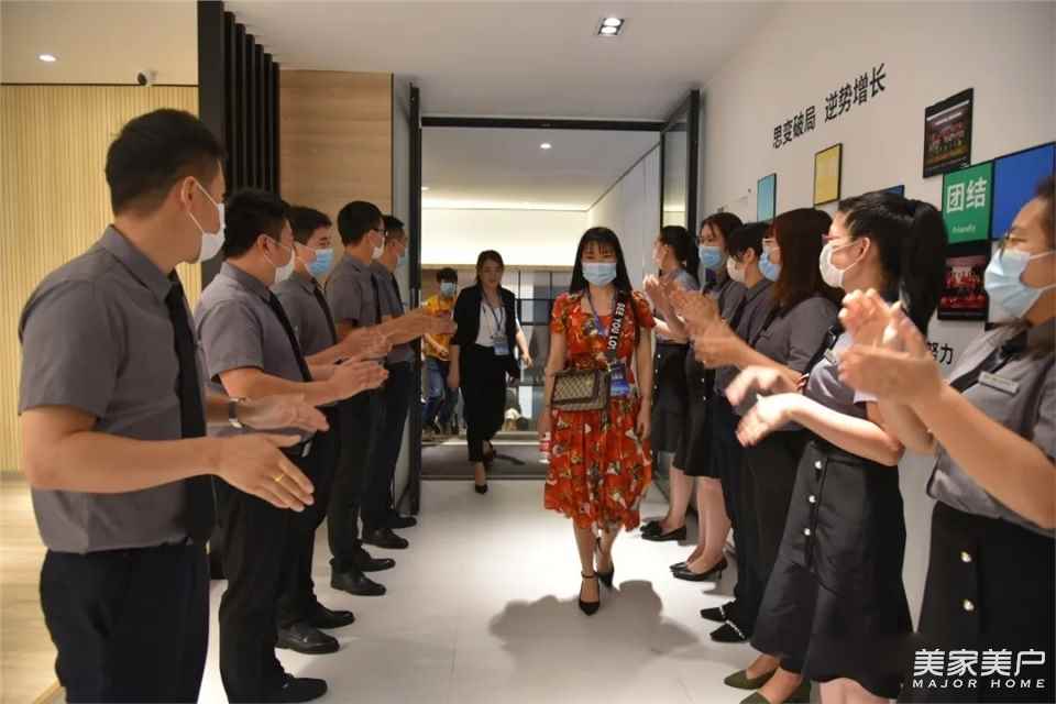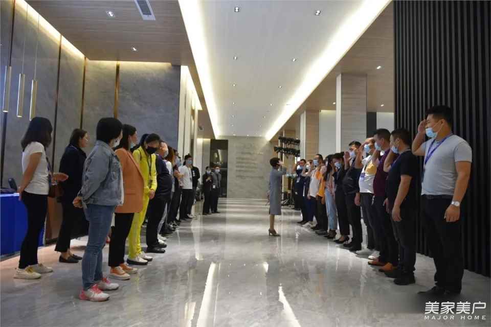 其邦全体员工一早列队站在总部门口,他们面带笑容用热烈的掌声欢迎着2020特训营第二批全国经销商家人们的到来。