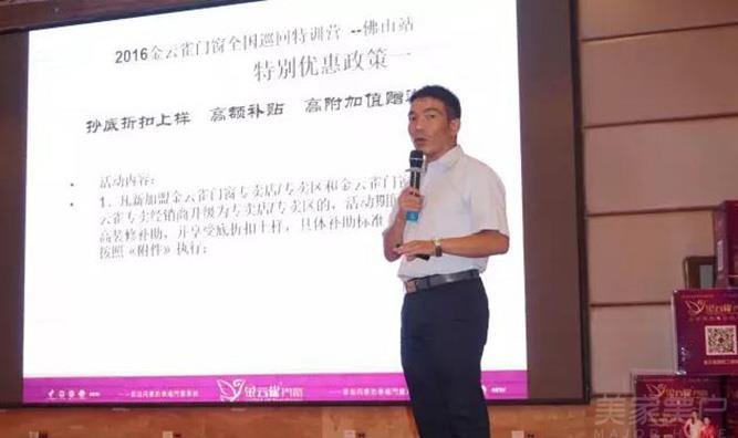 产品是企业赖以生存和发展的根本,下午17时30分,金云雀门窗营销总监张林财先生为大家做了产品知识培训,指导经销商们更好地理解自己的产品特点及优势;同时,张总监介绍了金云雀门窗推出的新产品系列和做了本次会议的特别支持政策解读,希望在品牌、政策、价格等方面更多的支持和帮助经销商及新老客户,以应对目前竞争激烈的市场发展状况。