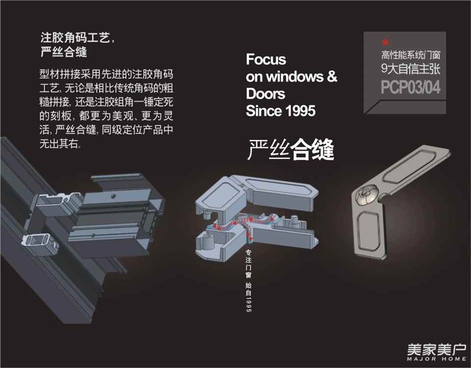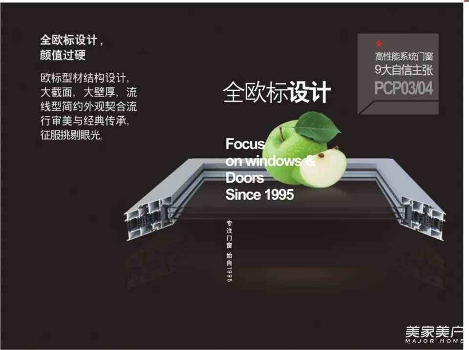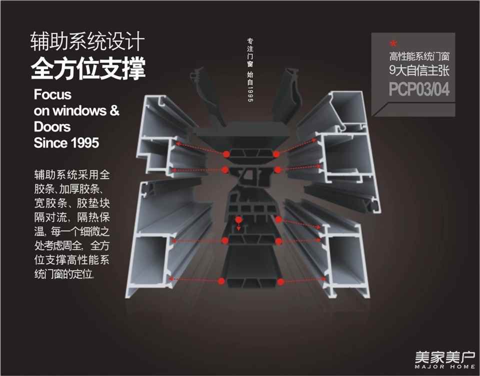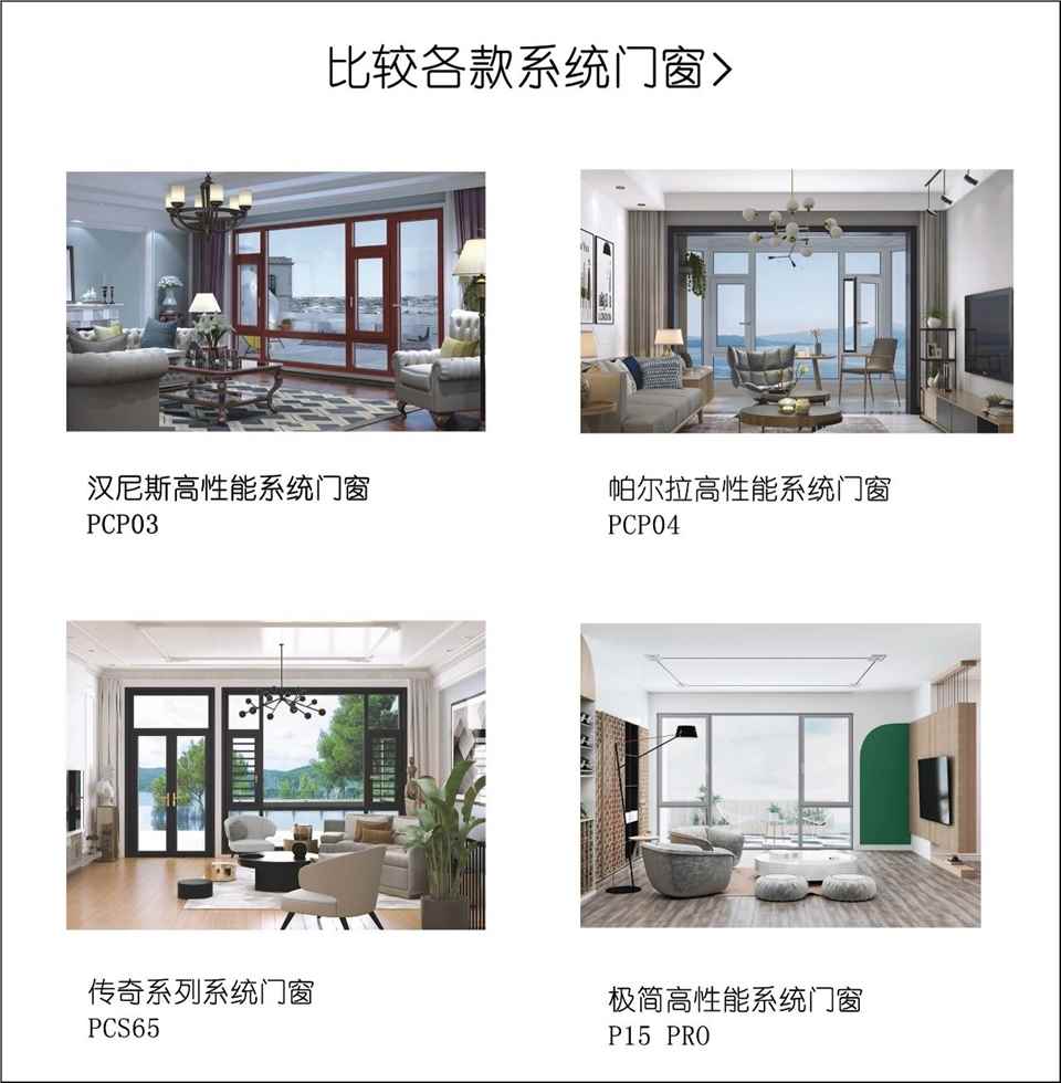 帕莱德第一代系统门窗汉尼斯PCP03、帕尔拉PCP04,主张九大自信,六大系统(型材系统、隔热系统、玻璃系统、辅助材料系统、安全设计系统、CNC加工系统)