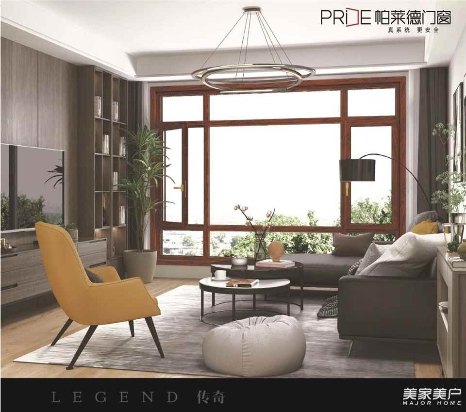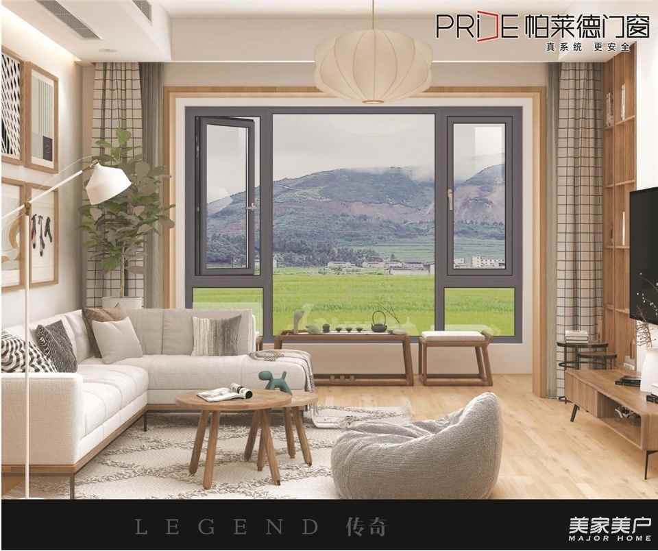 传奇S65系统门窗在造型上为了从更本身解决高窗设计强度不足的问题,采用一体式的加强型中挺设计,使得家装布局、空间搭配一致,达到整体美观和谐舒适的装饰效果。