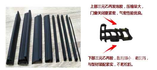 辅助材料系统主要体现在胶条设计方面,使用的是知名品牌海达胶条,欧洲标准符合欧盟DIN7863欧标,寿命长,环保。豪车级别三元乙丙发泡胶条、密封、阻隔热递作用。玻璃双面胶条,科学结构,免打胶设计。型材结构使用上部三元乙丙发泡胶,下部三元乙丙胶,门窗关闭更紧密,气密性能优良,硬度高,与型材装配紧实,不易松脱。