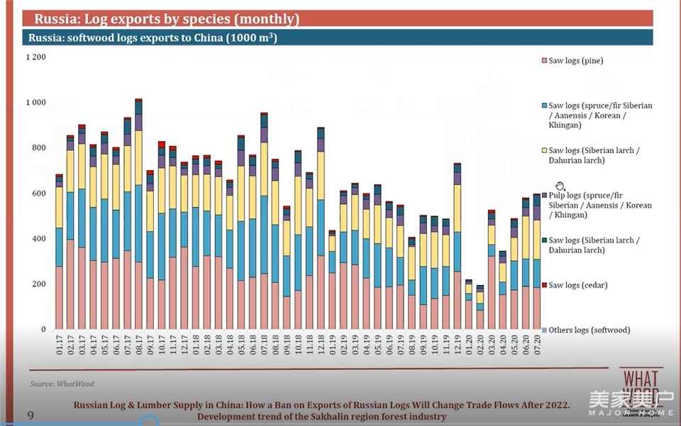 俄罗斯Whatwood高级咨询专家Marina Zotova着重介绍了俄罗斯原木出口禁令下俄罗斯木材市场可能发生的变化。Marina Zotova 女士介绍道,中国作为俄罗斯木材主要出口地,占俄罗斯木材出口总额半数以上,因此,如何应对俄罗斯对于原木的出口禁令对两国木材市场有着至关重要的意义。由于关税影响,俄罗斯原木出口额自2008年开始下降,与此同时出现增长的是锯材市场,正处于稳步发展阶段,预计未来仍有发展空间。且俄罗斯库页岛地区针对木材市场实行税务激励政策,使库页岛地区木材出口平稳发展。