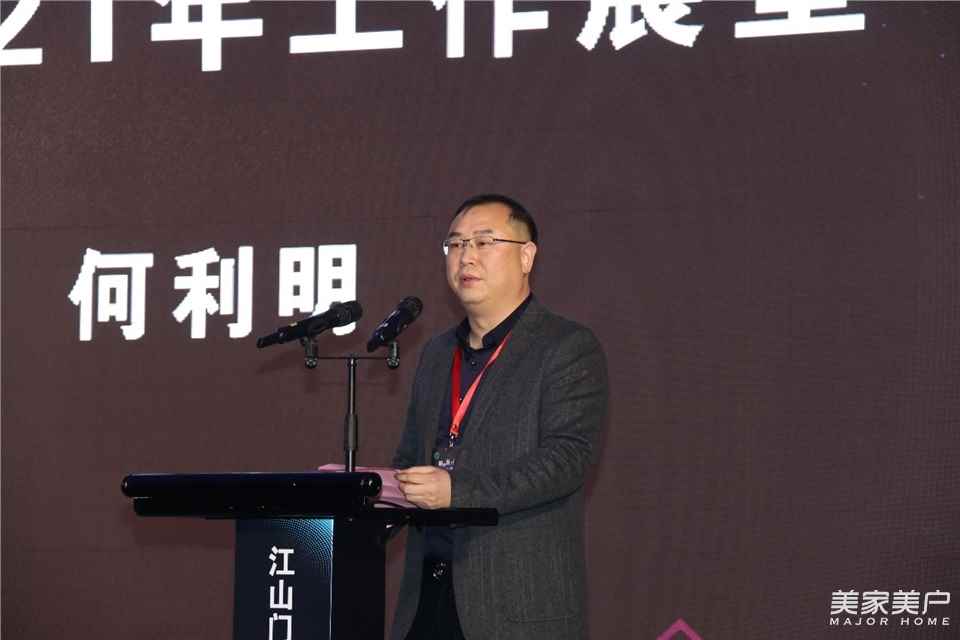 江山市门业协会会长、王牌家居董事长何利明作了2020年协会重点工作汇报及2021年工作展望,2020年江山门业协会面对疫情应对积极,圆满完成协会本年度制定的工作计划;2021年,协会将继续做好行业发展助推器,发挥信息平台优势,探索工作新形式,跟上行业新变化,更好地服务会员企业。