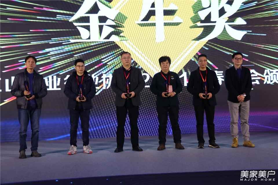 “中国木门之都——江山”门业金牛奖,王牌家居董事长何利明、开洋木业董事长毛庆德、金凯门业董事长陈江富、金旗门业董事长徐乾龙、雅迪乐木业董事长郑利云,因对江山门业的发展做出了突出贡献,被授予金牛奖。