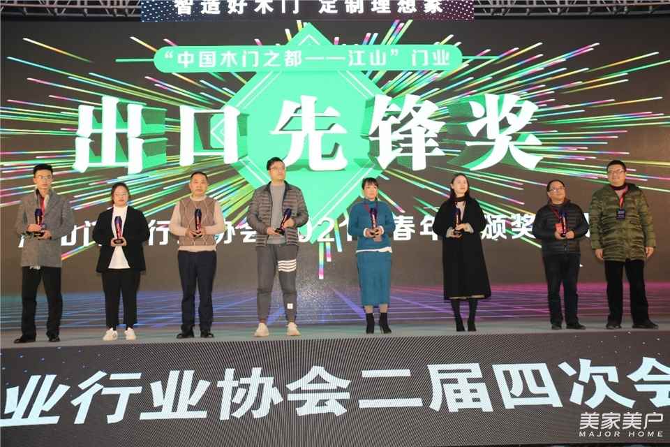 江山门业不仅国内做得好,在出口方面同样表现出色,台上企业被授予“中国木门之都——江山”出口先锋奖。