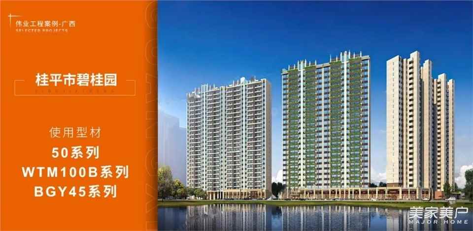 桂平碧桂园集商贸、人居、休闲、教育多功能于一身,同时紧邻郁江,可享受一线江景资源。伟业为项目选取50系列、WTM100B系列、BGY45系列型材产品组合,匠心筑造。