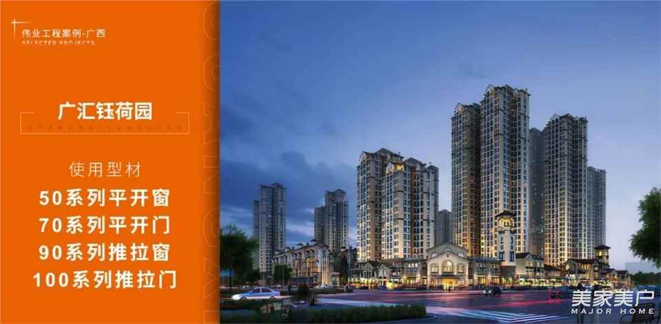 广汇名都作为广汇集团首筑江南,礼献南宁的作品,项目选用伟业集团50系列平开窗、70系列平开门、90系列推拉窗、100系列推拉门系列型材,以品质建筑要求革新人居生活。