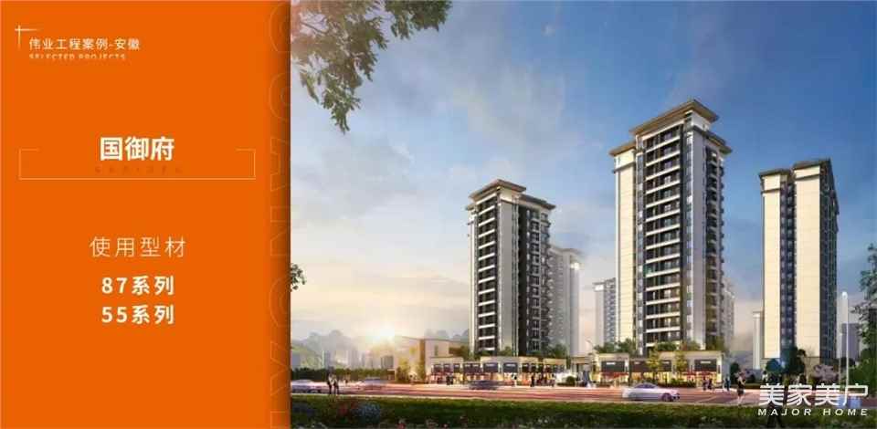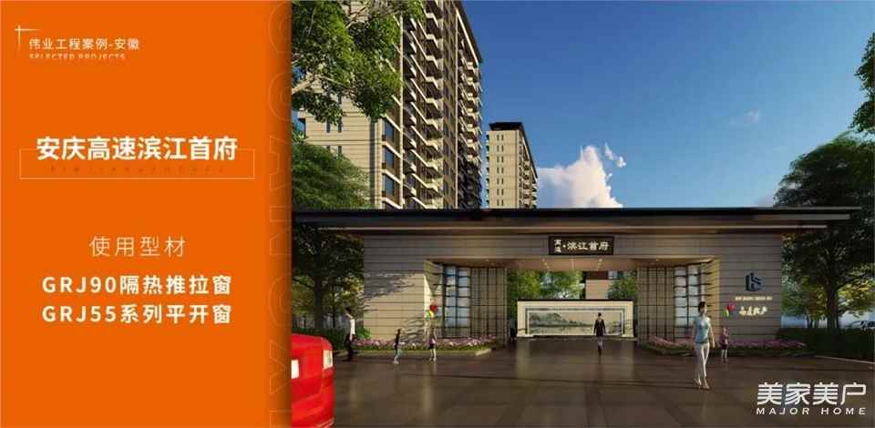 高速滨江首府位于安庆主城芯,17万㎡的新中式设计,运用伟业铝材GRJ90隔热推拉窗,GRJ55系列平开窗产品,独揽长江一线风光,菱湖公园、新河景观带揽景四季。