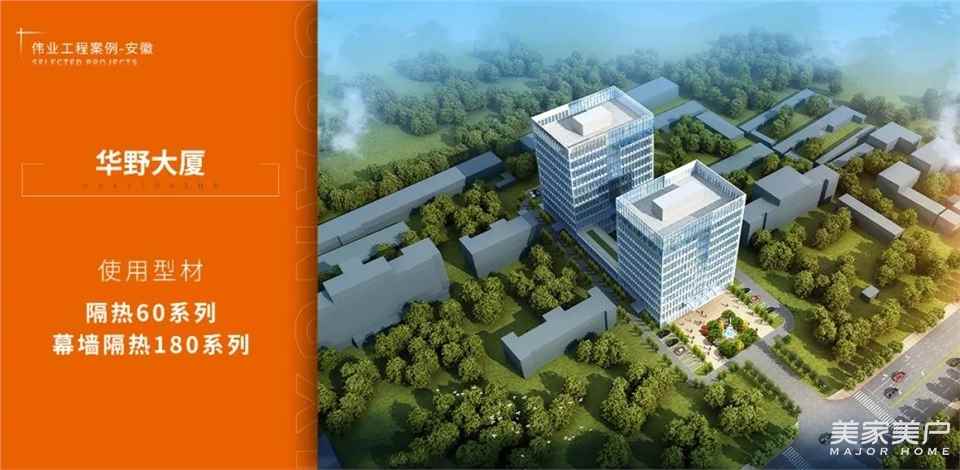 安徽华野总部经济楼落户六安南山新区。华野总部项目计划投资2亿元,包含商务办公、服务中心及商业配套等。项目采用伟业铝材60隔热系列,180隔热幕墙系列产品。