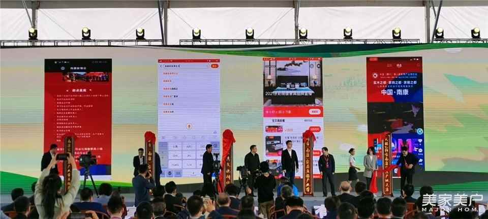 开幕式上,南康区先后获颁“国家进口松木板材利用试点县”及“国际进口木材贸易博览会永久举办地”牌匾,与会嘉宾还为“中国家具文化研究院”、“抖音家居直播基地”、“快手(南康)家具直播基地”、“天猫&淘宝南康家具直播基地”、“京东产业带南康直播基地”揭牌。