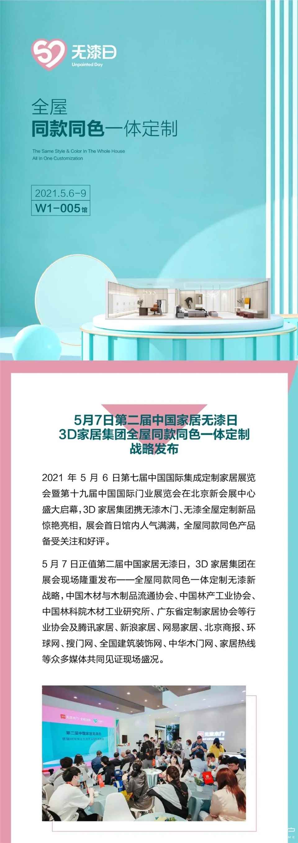 5月7日第二届中国家居无漆日,3D家居集团全屋同款同色一体定制战略发布