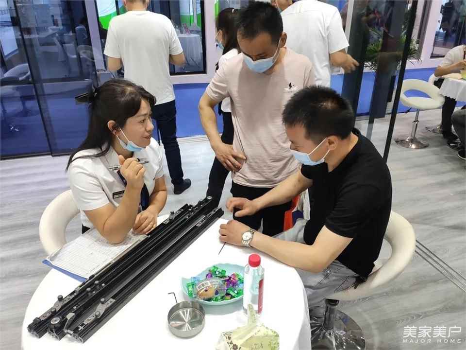 依麦的拳头产品三联动、移门缓冲器,其独特的工业设计,人性化的功能体现,安装简易,现场魅力四射,收获粉丝无数,强势吸睛。
