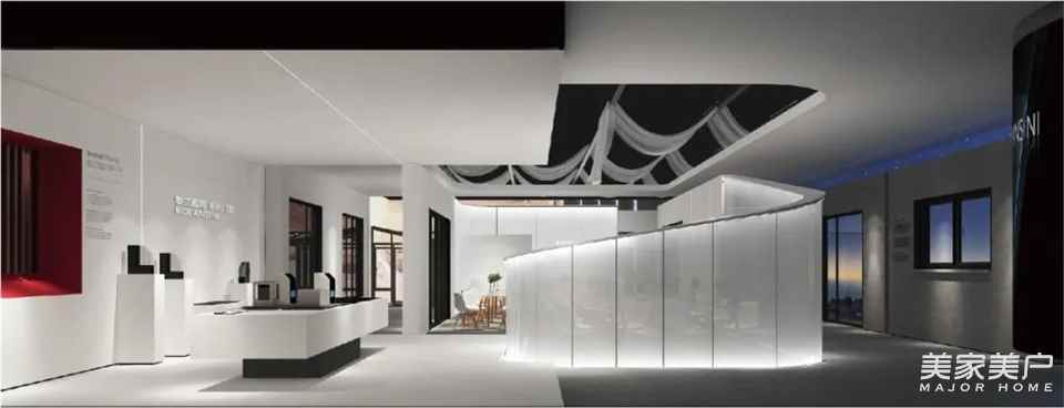 罗兰西尼系统门窗,以简约白色系现代设计风格,运用弧形线条元素,构造出一个光与影、门窗与空间的沉浸式体验馆,由内而外给人一种美好、干净的视觉享受。
