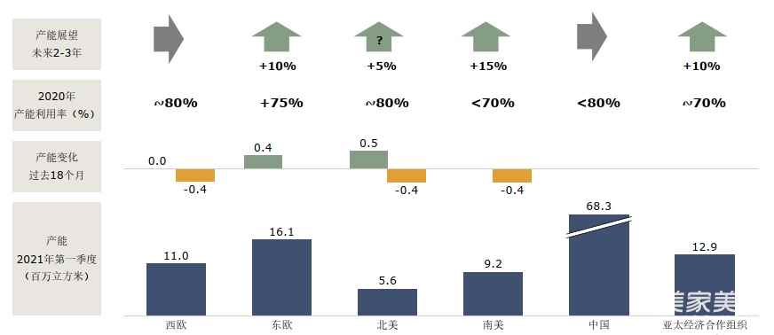 西欧、南美和中国的中密度纤维板/高密度纤维板产能在过去18个月下降,但东欧、南美和亚太地区宣布了新的投资计划。