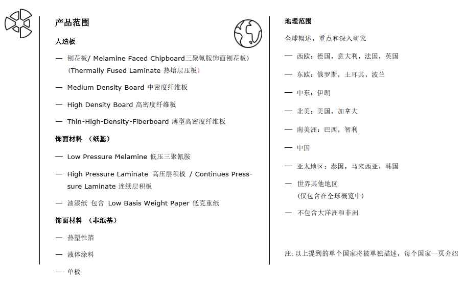 报告还将包含以下方面的分析:人造板和饰面材料产业结构,新冠疫情给未来的竞争力和产业结构带来的改变,“赢家”和“输家”的出现。