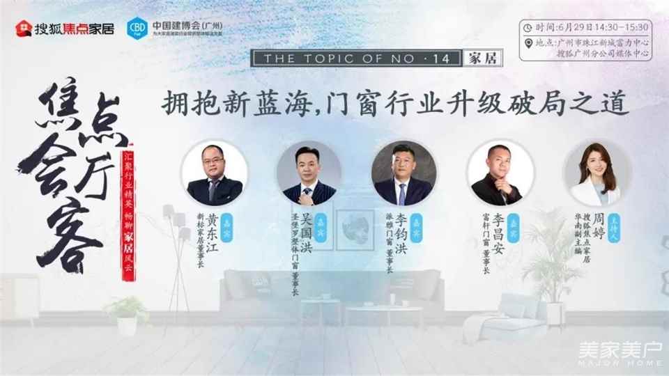 6月29日,由搜狐焦点家居联合建博会(广州)主办的以“拥抱新蓝海,门窗行业升级破局之道”为主题的对话沙龙在广州市珠江新城富力中心搜狐广州分公司媒体中心顺利举行。