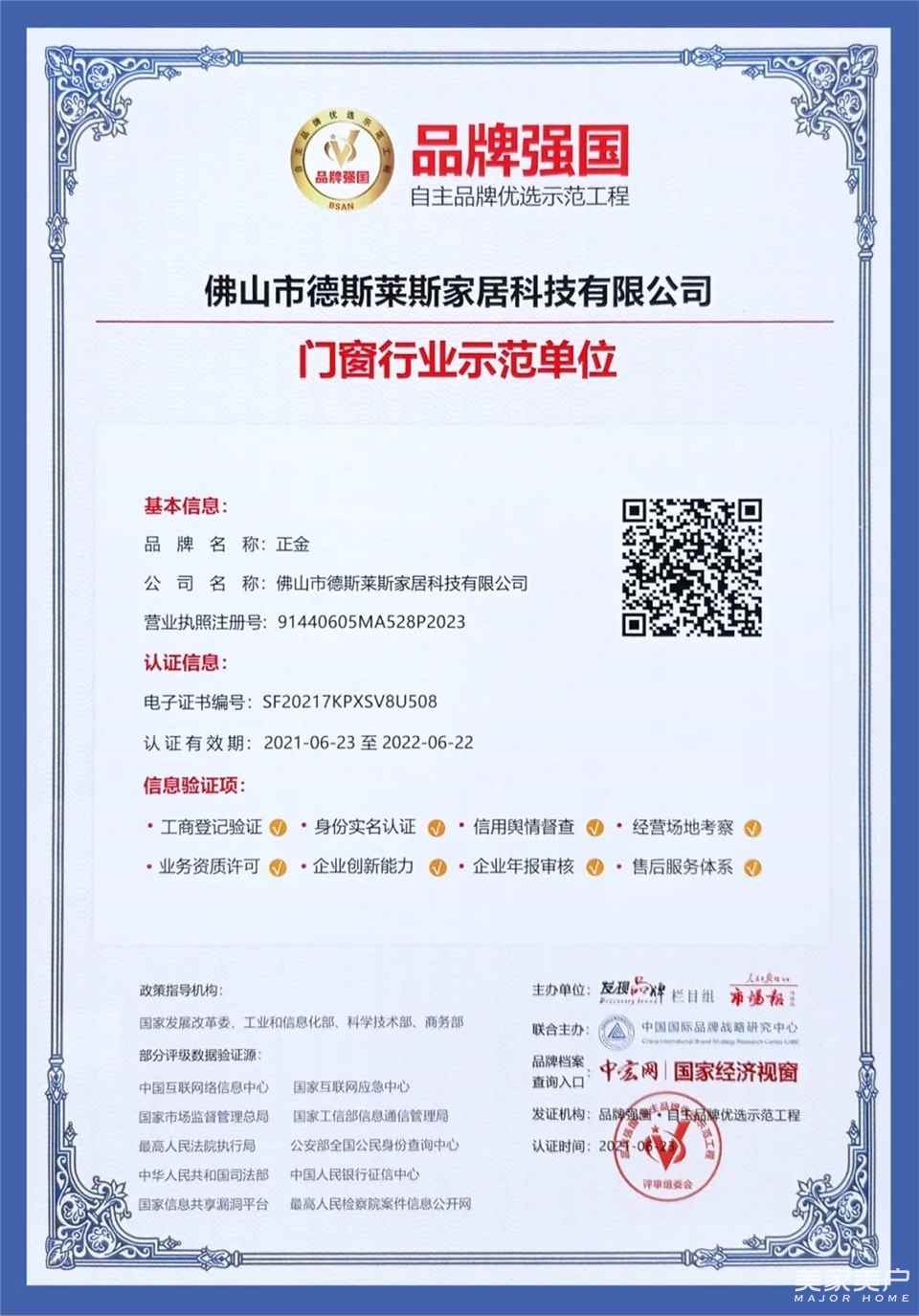 经由品牌强国示范工程运营中心审核、认证、社会公示,“正金门窗”符合示范工程评选标准,成功入选为品牌强国示范工程产业链孵化行业优选单位,企业信息录入品牌强国示范工程数据库,在国家级平台展示品牌形象。