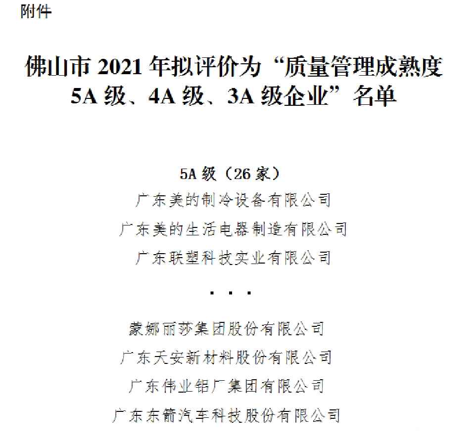 此评价根据《佛山市人民政府办公室关于修订佛山市工业产品质量提升扶持办法的通知》(佛府办〔2020〕20号),通过企业自主申报、佛山市各区市场监管局初审、佛山市市场监管局及专家评审等一系列流程,针对企业的质量管理工作,从领导、质量、创新、品牌、效益五个维度进行严格审核把关,最终评价出质量管理成熟度评价的企事业单位。
