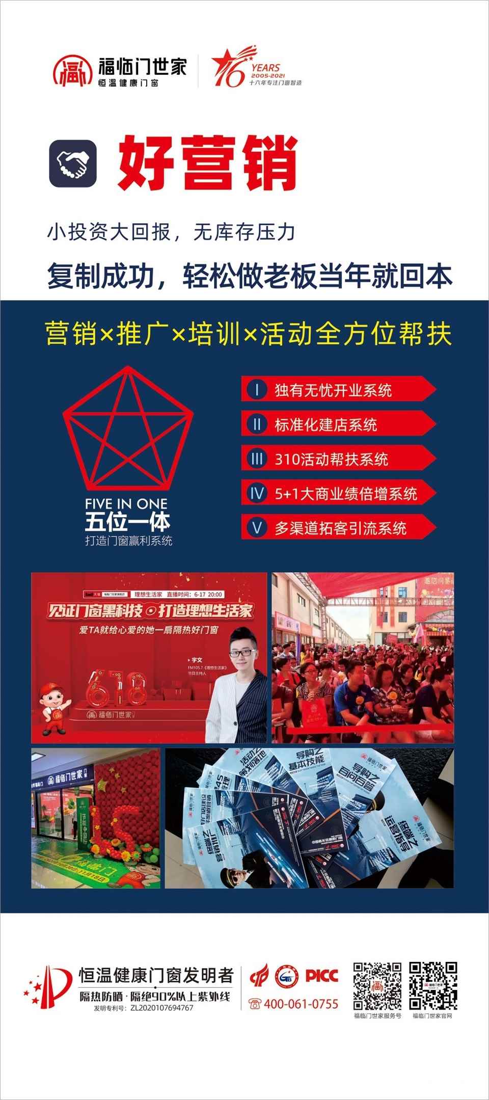 福临门世家门窗凭借独有的门窗节能环保技术和深厚的企业健康节能文化,专业的、务实稳重、可信赖的品牌个性,荣获2020美好生活健康+优选品牌。开创健康新生活方式,引领新时代家居“健康+”新风尚。