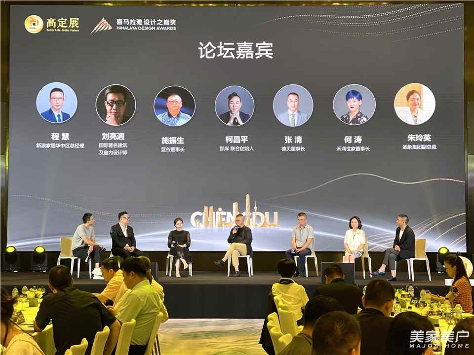启动环节邀请了中国高定展/高定俱乐部创始人张传喜、成都家具商会会长古皓东、罗浮宫家居艺术中心市场总监夏慧华、中国建博会市场推广负责人陈羿、那库创始人曹岩、德贝董事长张清、百V全屋定制董事长巫敏、圣象副总裁朱玲英、禾润世家董事长何涛、嘉斯达创始人灿烂,共同上台进行2021喜马拉雅·设计之巅奖(成都站)启动仪式。