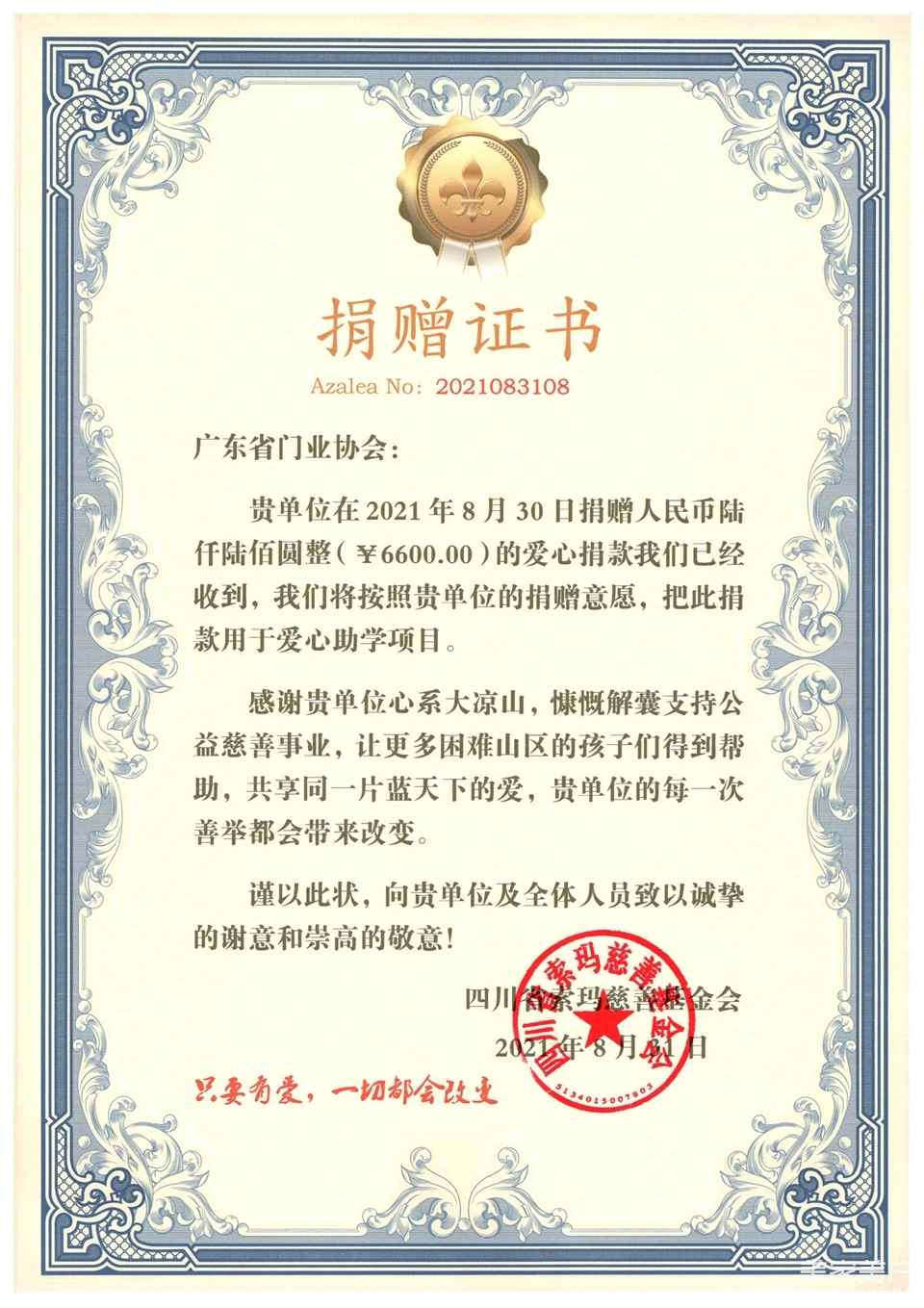 未来,广东省门业协会也将继续秉承着善心善行的公益理念,将我们的爱心不断延伸、不断扩大、不断传递,用我们微薄的力量,一步一个脚印,践行行业协会的社会责任,弘扬社会正能量!