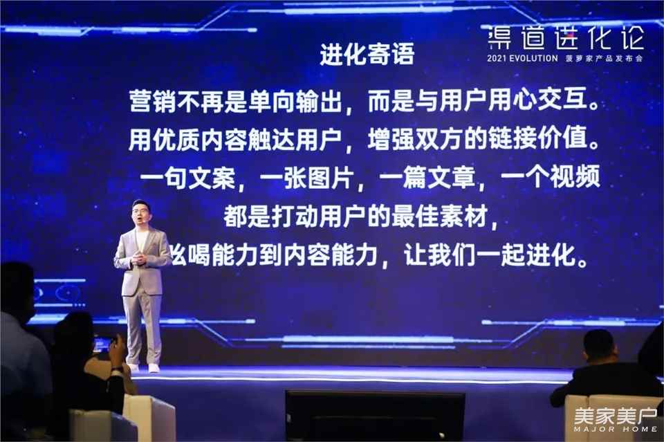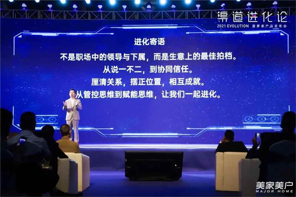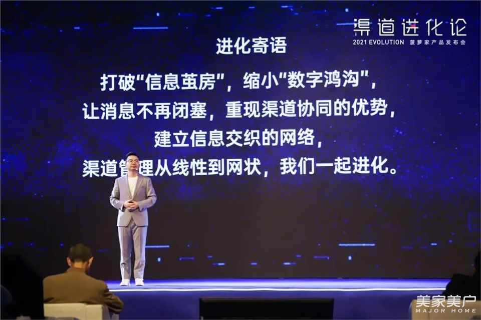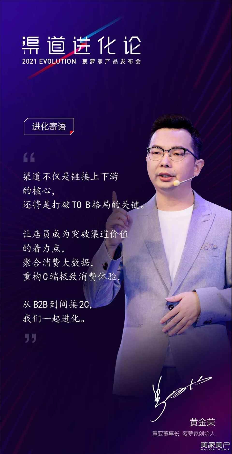 2021年11月16日,首届“渠道进化论”——菠萝家产品发布会,为美好而来。慧亚董事长、菠萝家创始人黄金荣现场进行了“渠道进化论”年度演讲。