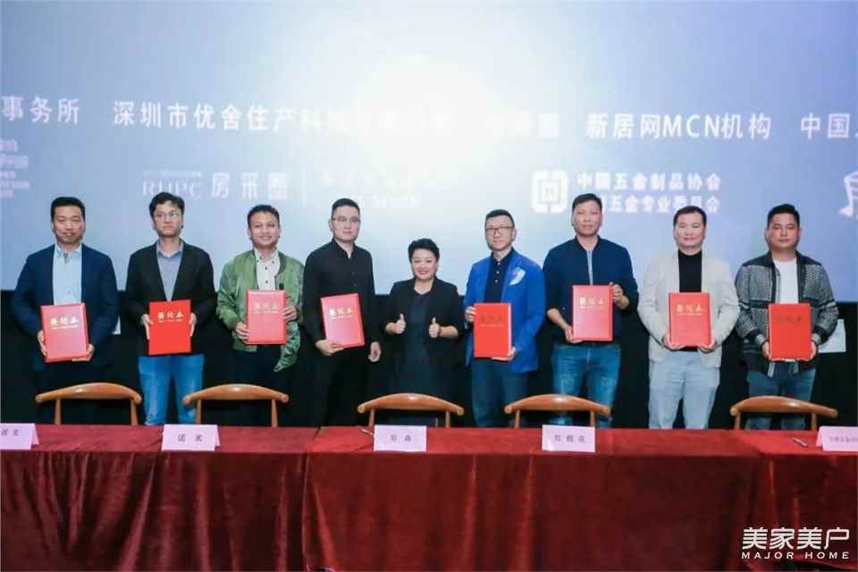 陈飞杰香港设计事务所(ROCKY Design)创始人、首席设计师、东方现代生活创导者、香港鲁班学院院长陈飞杰,深圳家协住宅研究院院长、深圳国际住宅展总策展人、深圳市优舍住产科技有限公司董事长关永康,房采圈创始人、高定空间设计平台发起人李刚耀,新居网MCN机构电商产品总监姚笛,抖音/快手家居类目头部达人、家居一姐设计师阿爽,美的置业总裁助理、产业发展事业部总经理林冬娜,广州市定制家居协会会长、合生雅居高端板木定制CEO王天兵,肇庆高新区家居建材行业协会会长、红棉花板材董事长曾敏华,佛山市智能家居产业协会会长、广东必达保安系统有限公司董事长陈伟禧,顺德智能家居产业联合会执行会长、顺德区政协委员李国尧,定峰汇创始人杨峰,银钻房产董事总经理梁志明,诺米家居五金总经理黄健荣,采筑平台代表陈国龙,中国五金制品协会家居五金专委会:会长:广东汇泰龙科技股份有限公司董事长陈鸿填,执行会长:中山市欧派克五金制品有限公司董事长许超、广州威万事家居股份有限公司董事长陈莹、广东西汇电器制造有限公司总经理梁顺伟、广东奥柏瑞科技股份有限公司董事长陈志忠、炬森五金董事罗嘉惠,秘书长:薛蓉,以及相关合作伙伴和家居达人荟网红达人等领导和嘉宾,出席盛会,共话发展。