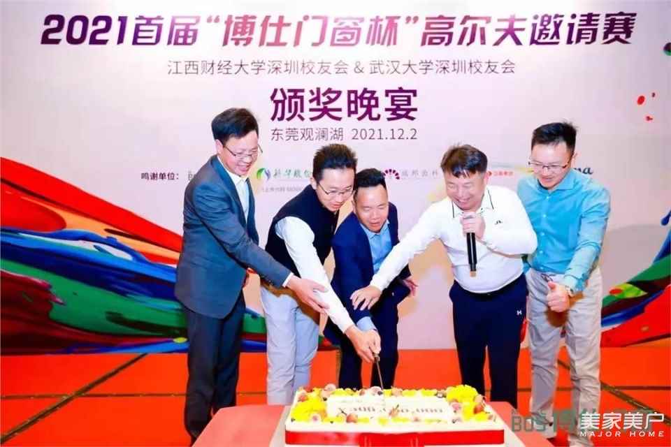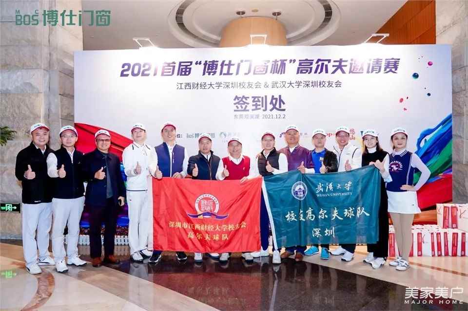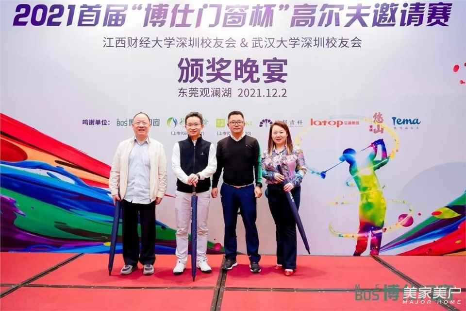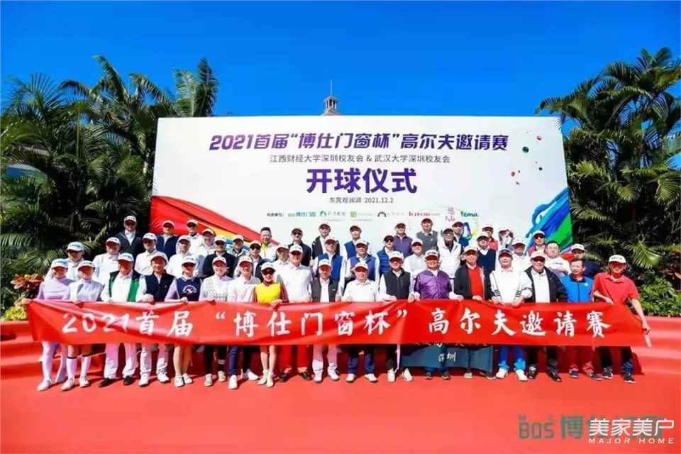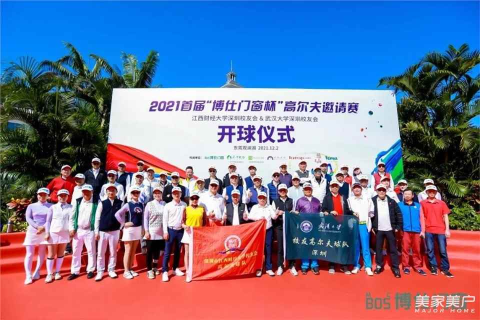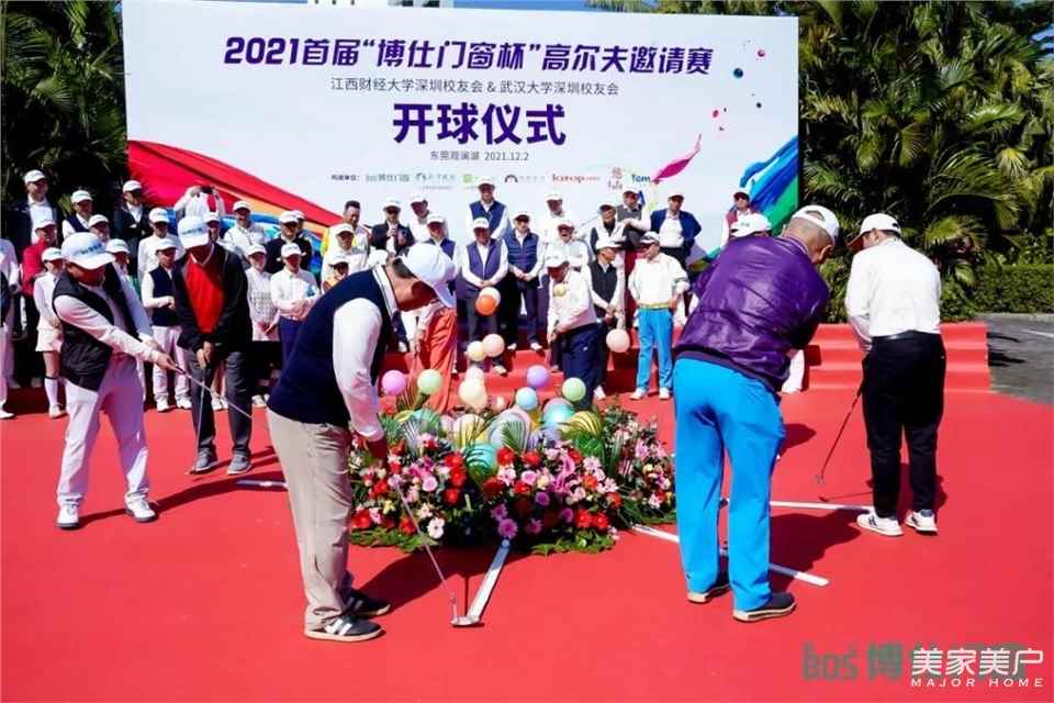 开幕式现场,由博仕门窗董事长王湘根校友、江西财经大学深圳校友会高尔夫球队队长詹伟哉以及武汉大学深圳校友会高尔夫球队会长杨光为本次邀请赛共同致辞,共同庆贺博仕门窗2021年提前完成全年目标,所有队员在欢呼和庆贺声中,开始了比赛。