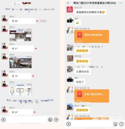 尊尚门窗为本次微信专场活动充分准备,和程咬金的老师共同携手,给大家带来一场头脑风暴,微信群里不仅仅有行业趋势发展解析、超级品牌模式分享、超级新商帮扶系统、还有福利定时红包雨大放送,您还在犹豫选择什么门窗品牌吗?尊尚门窗招商部总监王总和商学院唐院长为大家揭秘经销商选择加盟时最关心的几大问题!群里的气氛十分踊跃,快点跟随我的脚步来看看吧。
