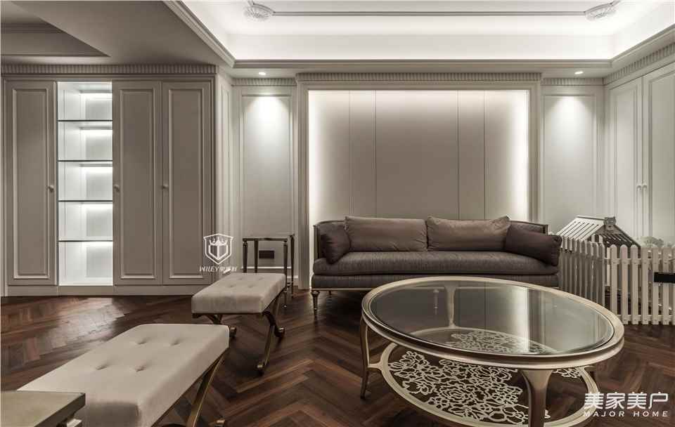 所以,在东威利设计的一栋别墅里,你会发现,对材质有追求的老一辈享受着原木产品,美式、法式或新中式的大厅、书房和茶室。同时,搭配艺术木皮、布料、贝壳和金属等元素的系列产品又满足了年轻一代对时尚的追求。通过设计师和技术部门的沟通,东威利让两种风格的产品产生了共性,巧妙地融合在一栋别墅里。
