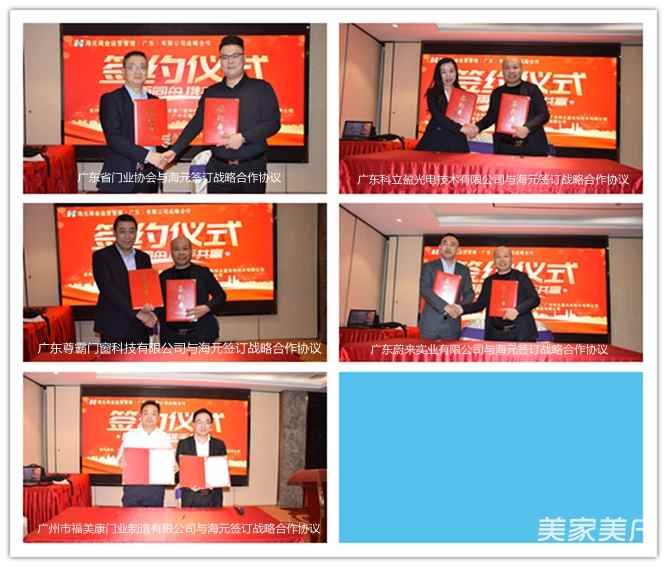 本次活动得到与会企业和嘉宾的认可和支持,在会上广东省门业协会、广东尊霸门窗科技有限公司、广东科立盈光电技术有限公司、广东蔚来实业有限公司、广州市福美康门业制造有限公司先后与海元商业运营管理(广东)有限公司战略合作签约仪式。