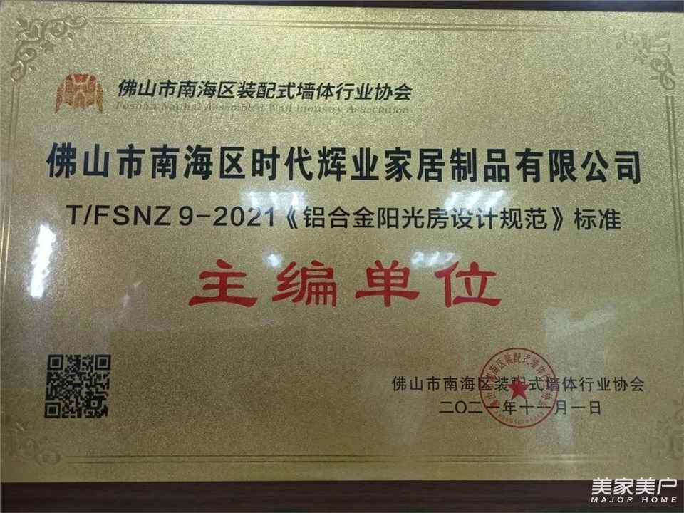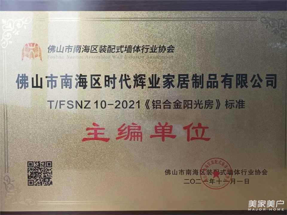佛山市装配式墙体协会是由佛山市南海区从事装配式墙体生产、加工、销售、安装、服务的企业以及装配式墙体上、下游企业自愿结成的、行业性、地方性的非营利性社会组织,尊尚门窗被邀请参与编写《铝合金阳光房》标准和《铝合金阳光房设计规范》标准。