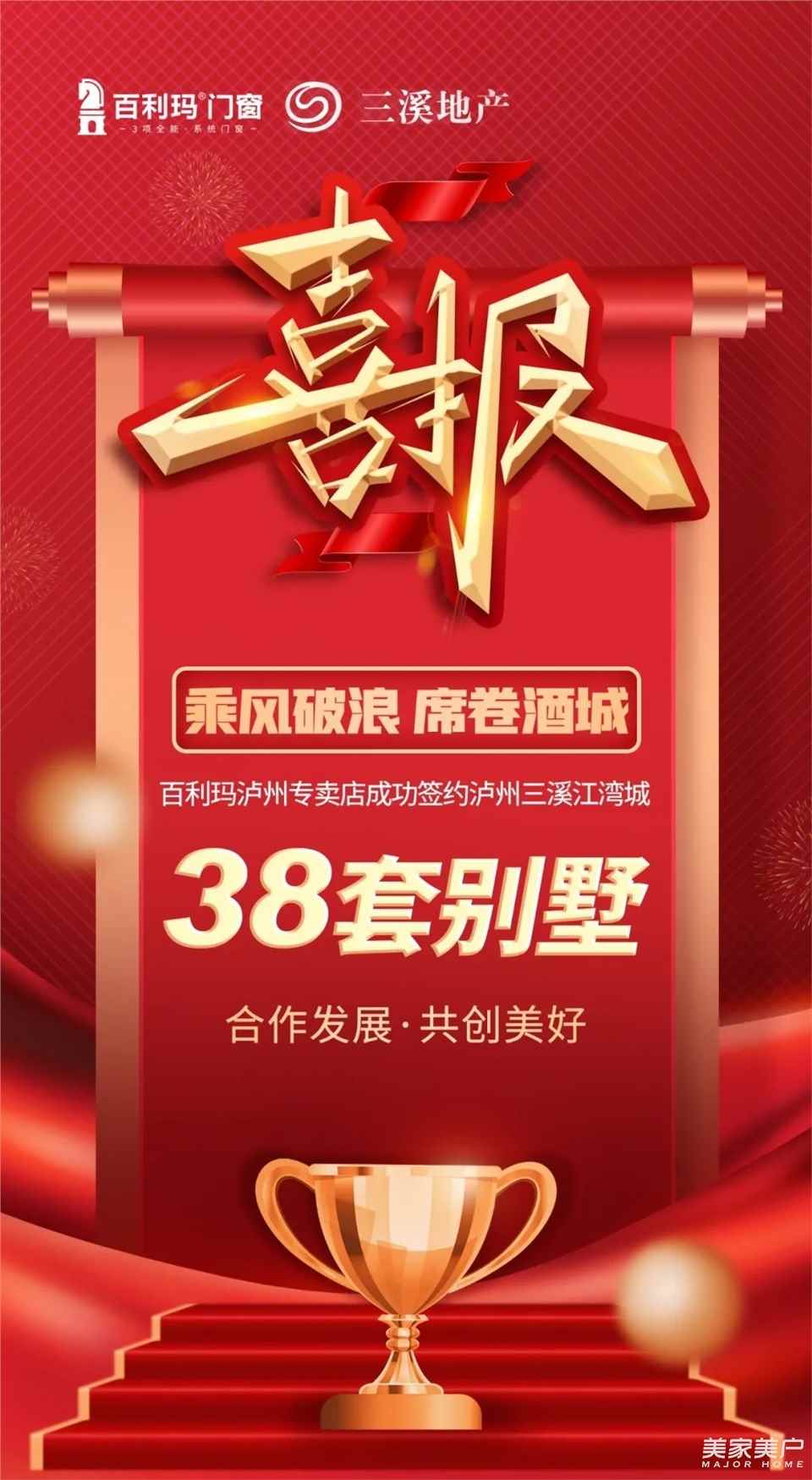乘风破浪,席卷酒城。近日,百利玛泸州专卖店成功签约泸州三溪江湾城38套别墅,项目总额达780万元。双方将在别墅项目合作门窗领域内展开深入合作,并为消费者带来更高品质的生活体验。
