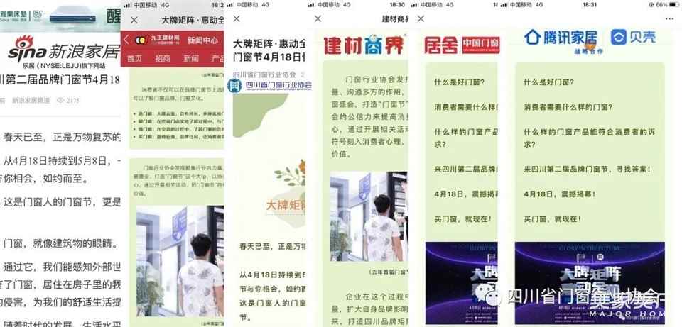 五大品牌与西南三人禾集团合作,凝聚各方优势,率领各自营销团队,打响主动营销战役,在“门窗节”大IP之下,提升品牌影响力及活动影响力。