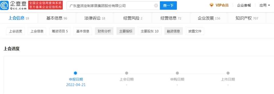 4月25日消息,深市主板近日新增两家受理企业,皇派家居赫然在列。这意味着皇派家居正式启动第二次IPO冲刺。