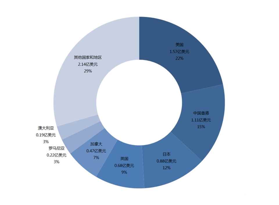 从出口方向和出口额来看,2021年采购中国木门产品前七位的国家和地区分别是:美国、中国香港、日本、英国、加拿大、罗马尼亚、澳大利亚。中国香港由原来的第三位升至第二位,澳大利亚以36.24%的增速跃升至第七位。
