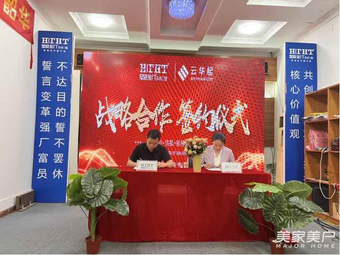 5月5日上午,云华起磁悬浮董事长潘慧玲和皇庭金门董事长许云旺分别代表云华起磁悬浮与皇庭金门,成功签订了“金牌战盟合作伙伴”协议。