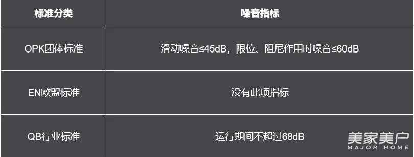 比如大家最关心的移门滑动噪音问题,欧派克内部要求的生产检测指标是滑动噪音不超过45dB,限位、阻尼作用时噪音不超过60dB,而在EN欧盟标准中没有此项指标,QB行业标准中要求的则是运行期间不超过68dB的较低标准。