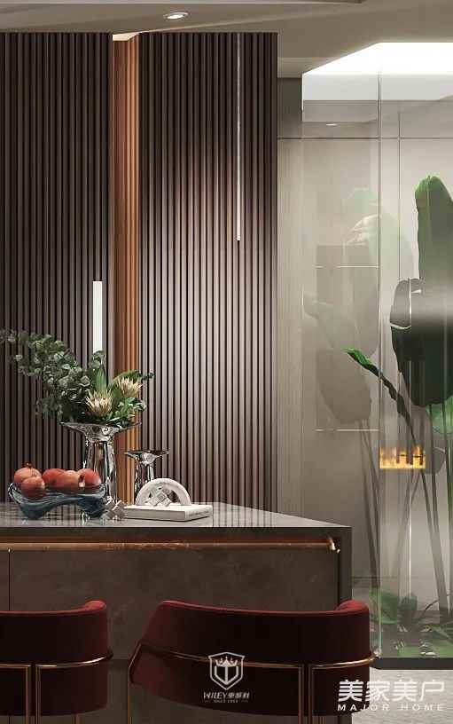 西厨区打破传统的朝向观念,最大限度上构建出居住的舒适体验。无主灯设计,增添了空间静逸的属性,在低饱和度色彩与亲肤质感的加持下,使整体空间更具亲和性。理性是先导,感性是归宿。在完美使用了室内空间的同时展现出沉稳高雅的美。