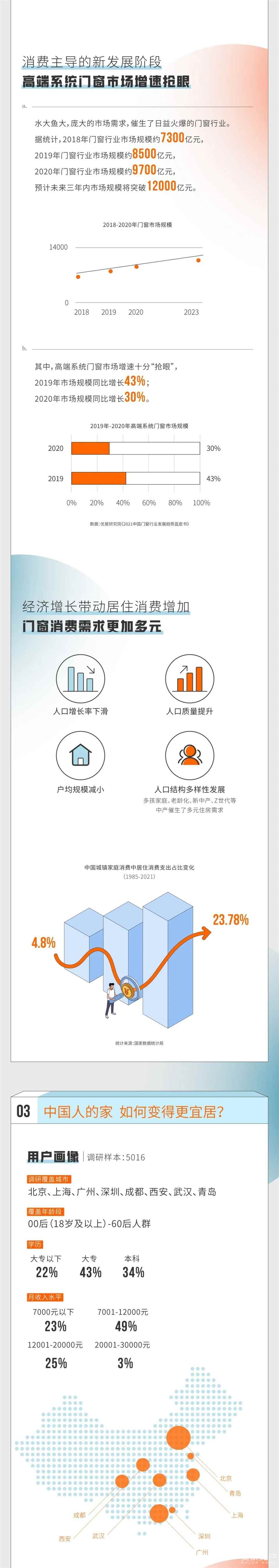 门窗在房屋建筑中的面积占比高,对居住环境、安全性和生活品质产生着直接影响,同一屋檐下的人性化人群,呈现出更加多元化的门窗消费需求。而存量房时代的到来,更是涌现了一大批二次装修和换新市场需求,一个新门窗消费市场正在开启。