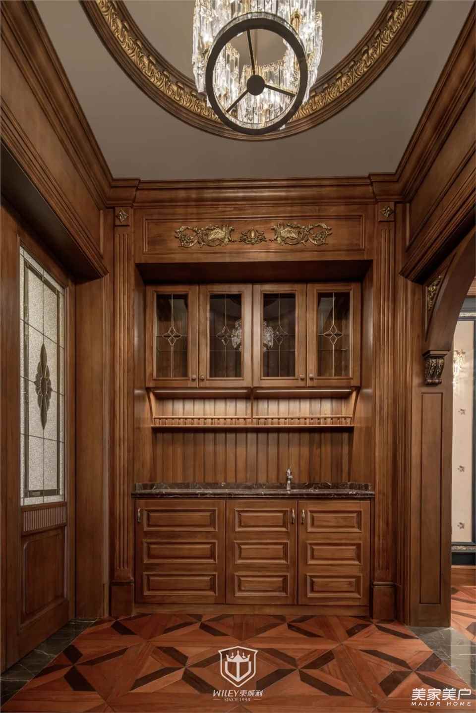 一整面酒柜优雅地呼应着空间整体布局,点亮局部空间的同时也彰显出极为浓郁的生活品质感。墙壁精心设置的嵌入式酒柜消解了空间的坚硬感和不适感,在暖光的映衬下,实现了文化内涵与生活美感的共融。