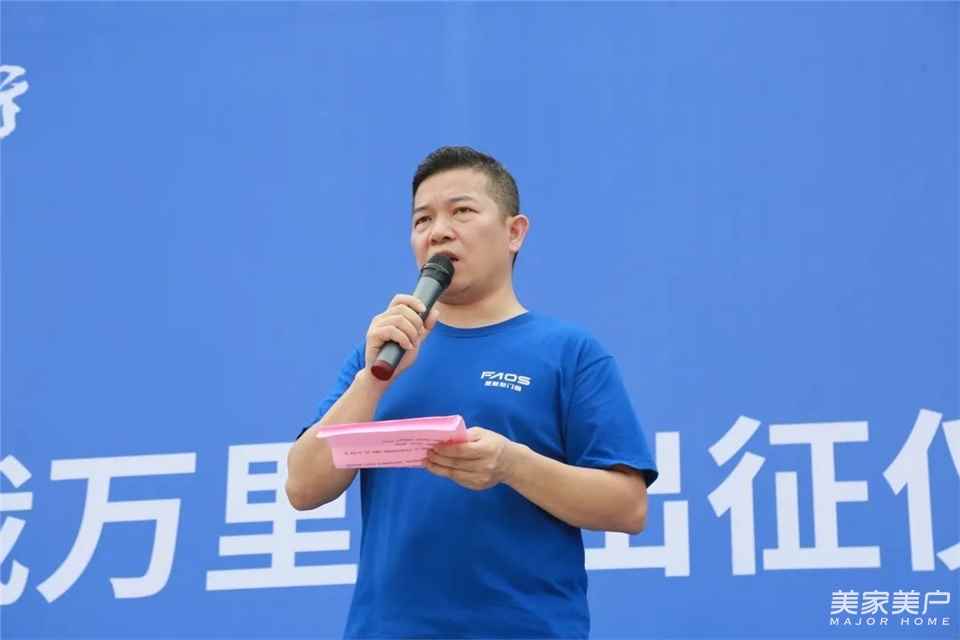 伴随着昂扬的歌曲,出征仪式拉开了序幕,富奥斯门窗董事长潘锡波先生作开场致辞。潘董指出,本次万里行旨在零距离聆听终端的想法与心声,了解终端最迫切的需求,解决门店经营管理中的种种困惑,加强终端门店与总部公司的工作协调性,使得各专卖店的业绩以及知名度不断攀升。