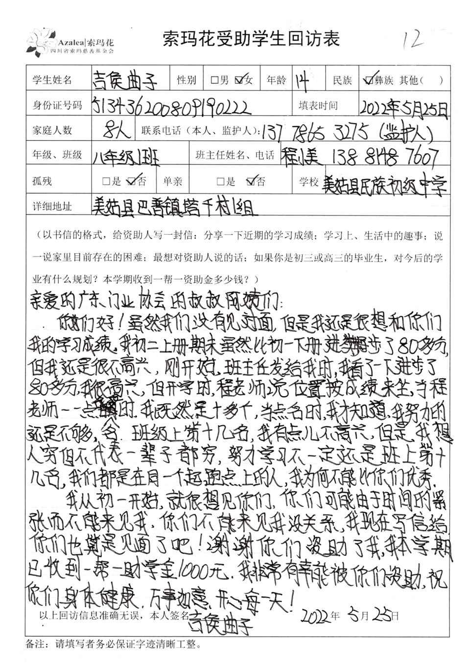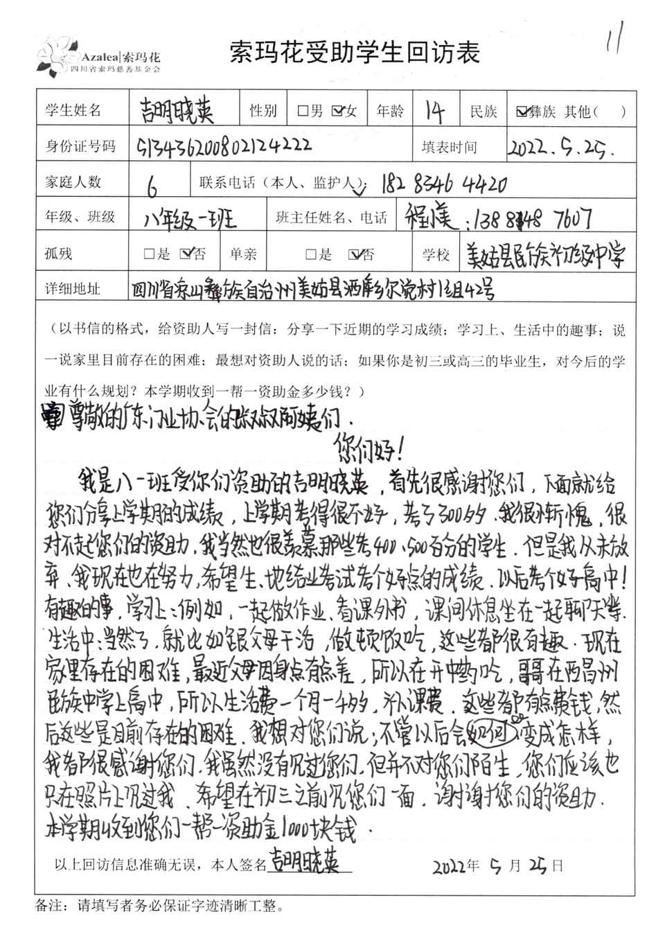 在年均收入2000元左右的大凉山,许多学校只能眼睁睁地看着一个个孩子因为家庭困难而休学甚至辍学。爱心成就梦想,帮扶点燃希望。为帮助家庭困难学生,让困难家庭感受到来自社会的关心和温暖,情况核实后,经过考察人员上报协会秘书处,协会通过会议后决定从贫困家庭中资助3名贫困学生完成初中三年学业。协会作为一个社会团体,尽力帮助大凉山部分特困家庭解决学生上学难的问题,让孩子们在求学路上少一丝忧愁,多一份温暖。
