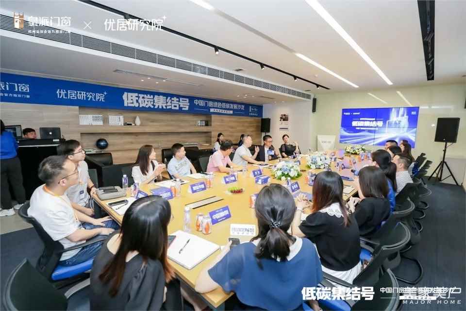 现场,全国建筑幕墙门窗标准化技术委员会秘书长王洪涛、中国标准化研究院佛山绿色创新研究院院长鲍威、广东省标准化研究院副院长刘杰、中国标准化协会绿色低碳专业委员会副秘书长周鲁俊、优居副总裁、优居研究院院长张永志、皇派门窗副总经理朱梦思及皇派门窗高管展开深度交流。