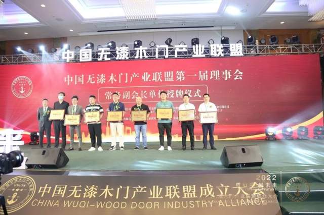 旺邦木门、蔓兹堡木门、曼哈盾木门、大迈木门、曼吉木门、阳春木门、伊佳特木门、迪美面板等被授予常务副会长单位。