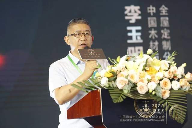 会议伊始,中国木材与木制品流通协会全屋定制分会秘书长李玉明登台,为本次会议致精彩致辞!李秘书长表示,组建无漆木门人自己的行业联盟,是为行业美好明天,也是为企业自身的发展创造机会。最后,李秘书长预祝大会圆满举办。
