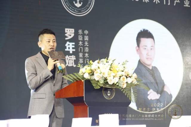 乐臣木门董事长罗年斌,作为联盟发起单位代表登台,公布产业联盟自律公约。
